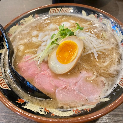 ● さて、今日は昼から所用で御徒町へ。見慣れないラーメン屋「魚と豚と黒三兵」という店が出来てたので入ってみましたが、不思議なもの。魚出汁は多分煮干し。そこに豚骨スープを合わせているんだと思うんですが、スープを乳化させていることで独特のねっとり感が出て、煮干し系天下一品的な味わいになってました。タマネギも入って、これは……中野にあった(今は味が変わったけど)「鈴蘭」に近いのでは?